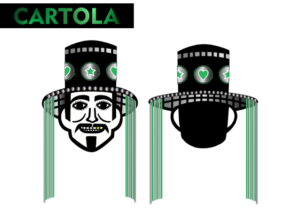 Elementos como ombreiras externas, fitas de cetim nas cores tradicionais verde e branca, e símbolos gráficos: entre eles estrela, sol e coração, foram incorporados ao traje como signos visuais que dialogam com a ideia de brincar, performance e coletividade. Essas escolhas evidenciam o design como prática situada, que se constrói a partir do território, da memória e das dinâmicas culturais locais. Estes símbolos foram encontrados e mapeados em pesquisa, na feitura das fantasias feitas pelos brincantes, como signo dos blocos preferidos, ou mesmo como adornos estéticos de fácil aplicação.